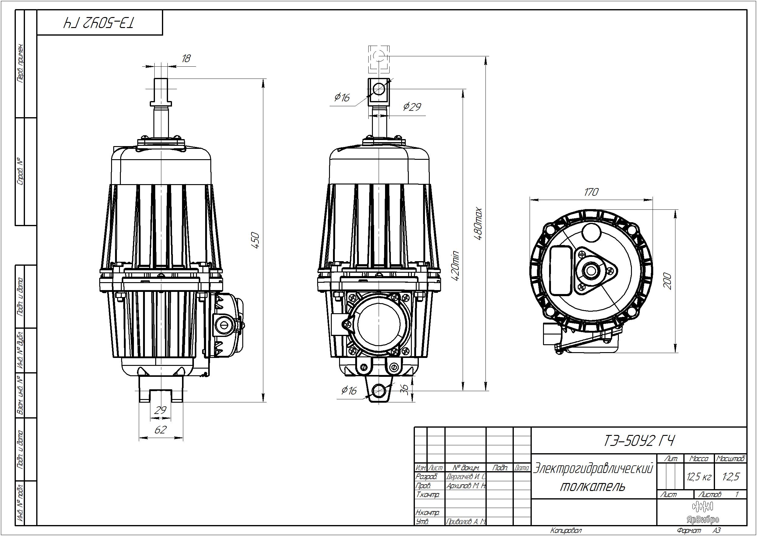 Технические характеристики электрогидравлического толкателя ТЭ-50