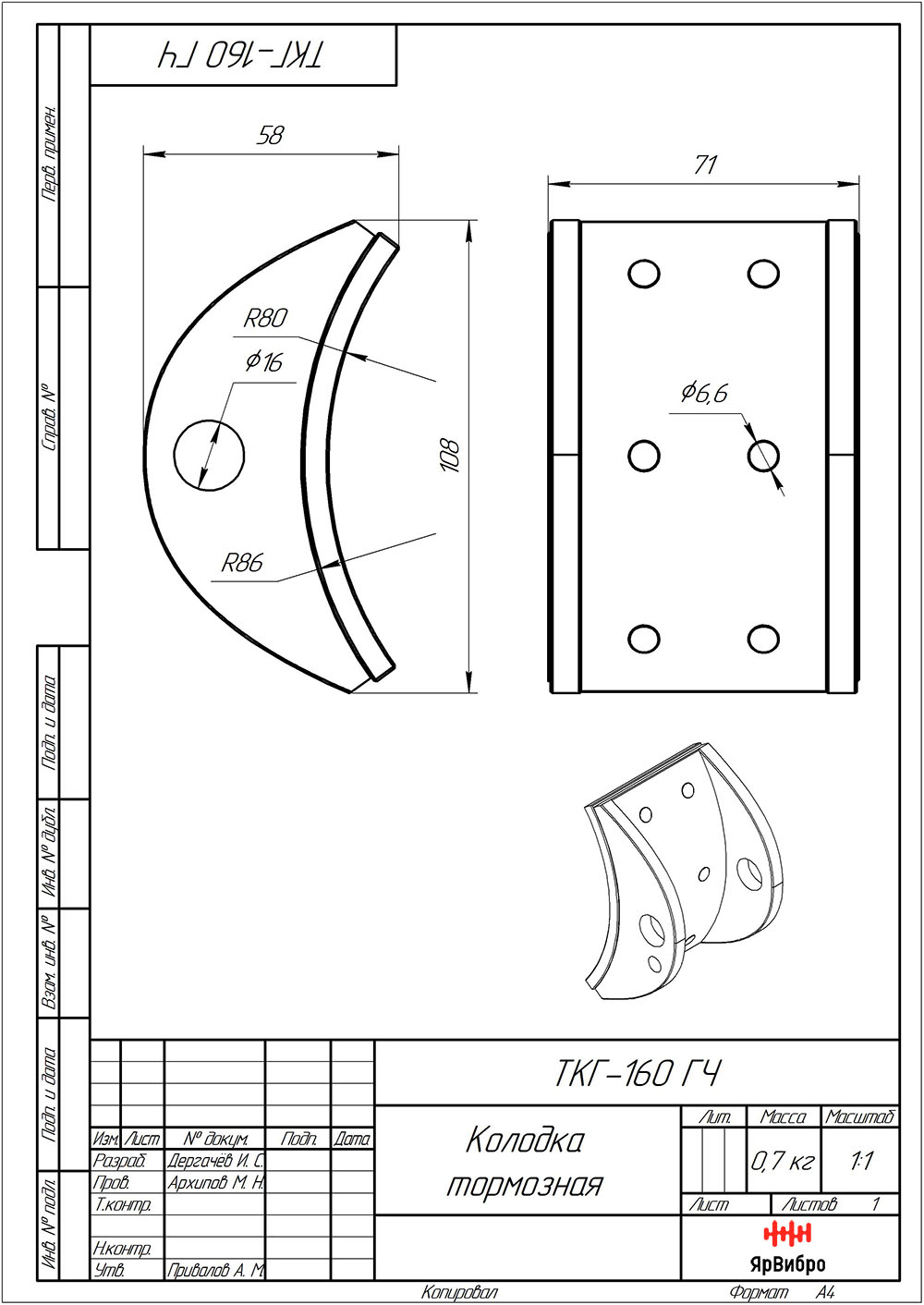 Габаритные размеры тормозной колодки к ТКГ-160