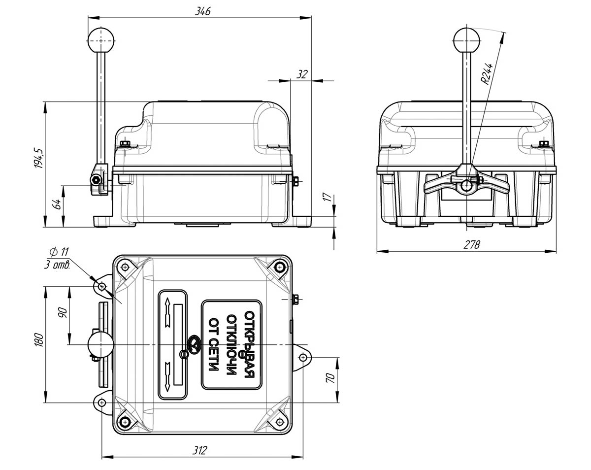 Габаритные размеры командоконтроллера ККТ-61