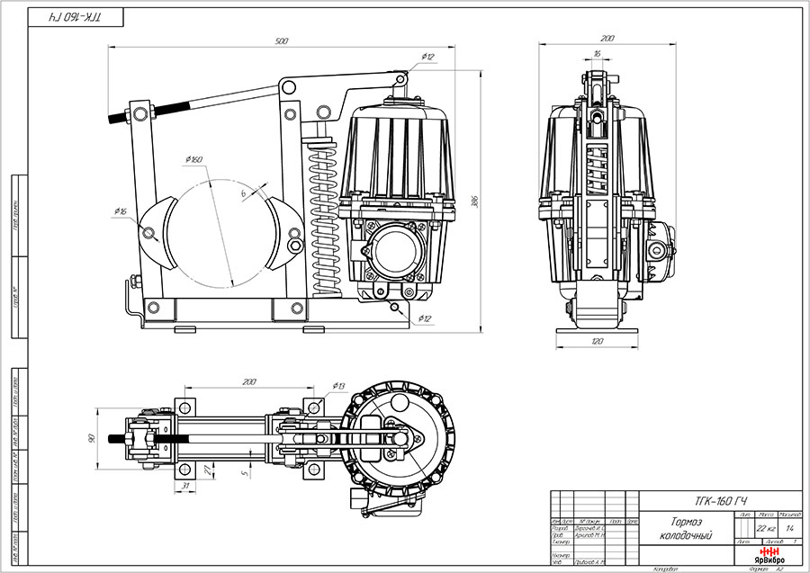 | Масса тормоза в сборе, кг | 22 |