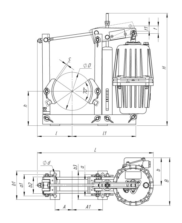Тормоз колодочный в сборе с толкателем ТКГ-200