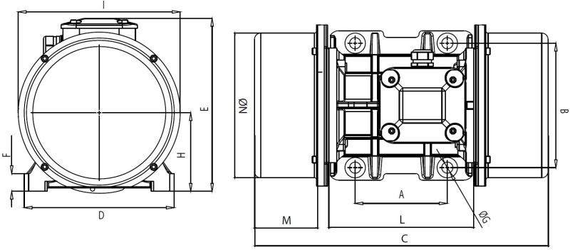 Габаритные и присоединительные размеры вибратора КРАСНЫЙ МАЯК 14/1500